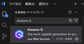 まずはVS Codeの拡張機能から、Amazon Qをインストールします。