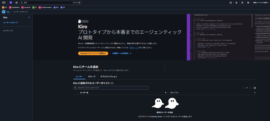 もう一度Amazon Q Developerの管理画面に戻ります。