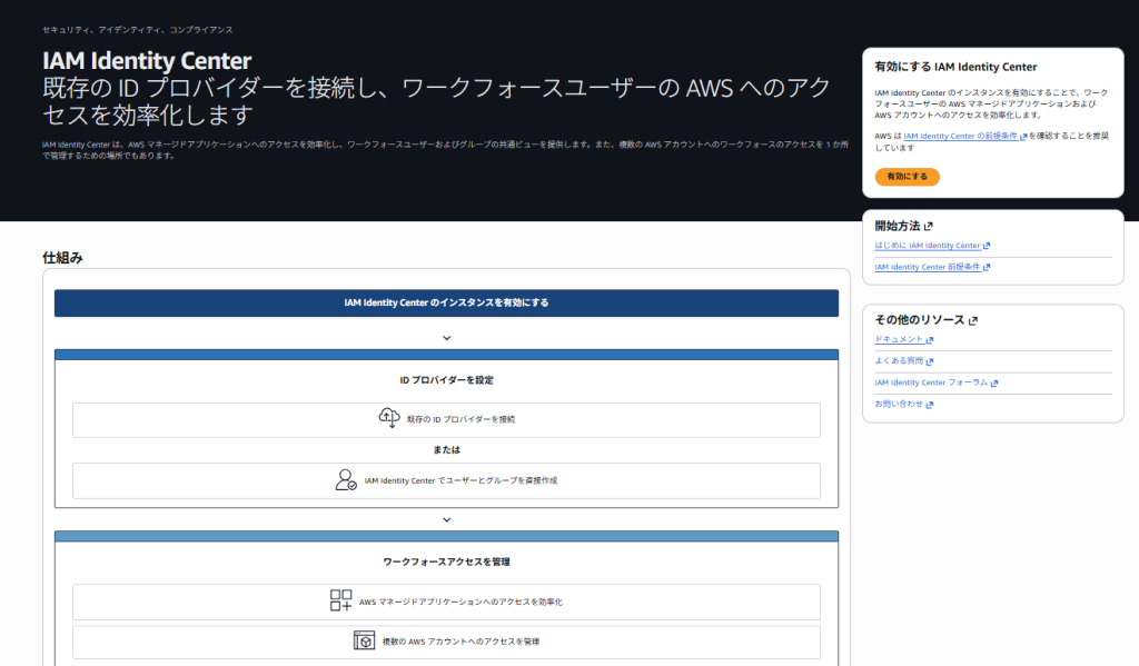以下のように流れがあるので、いったんIAM Identify Centerを有効化します。