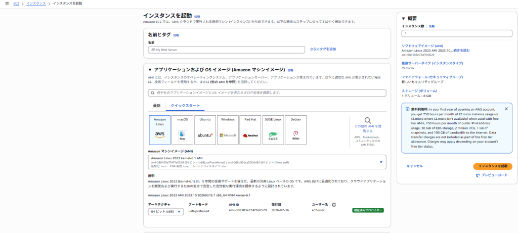 以下の内容でEC2インスタンスをAWSに実際に立ち上げてみました。