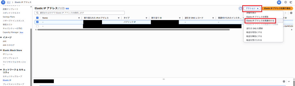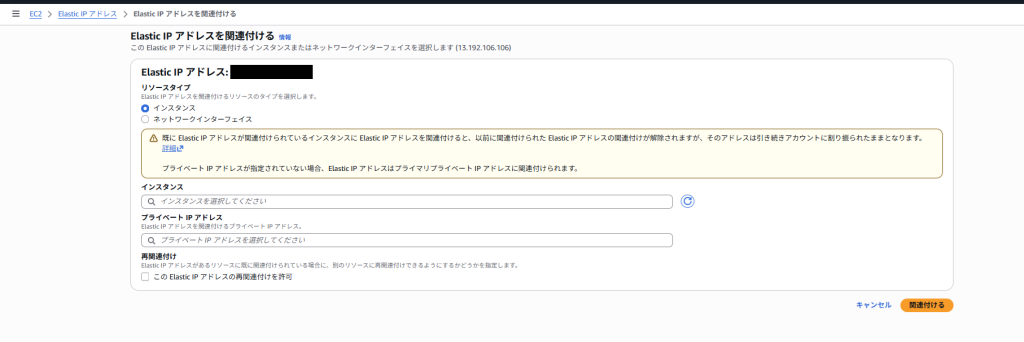 - 払いだしたElastic IPをEC2などのリソースに割り当てる