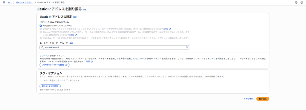Elastic IPを割り振る(割り当てる)