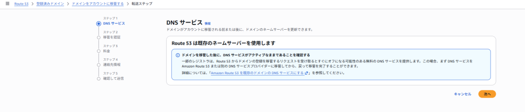 このドメインをAWSでの管理、つまりAWSのRoute 53で管理するようにドメインをエックスサーバーからAWSのRoute 53へ移管します。