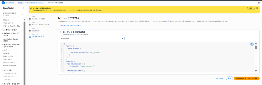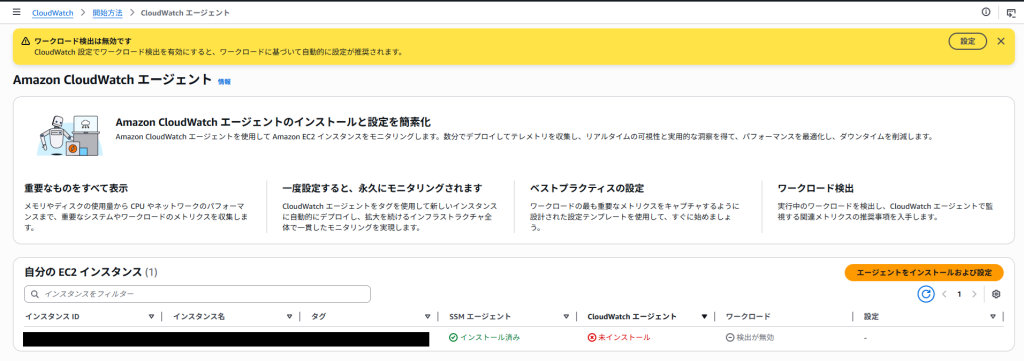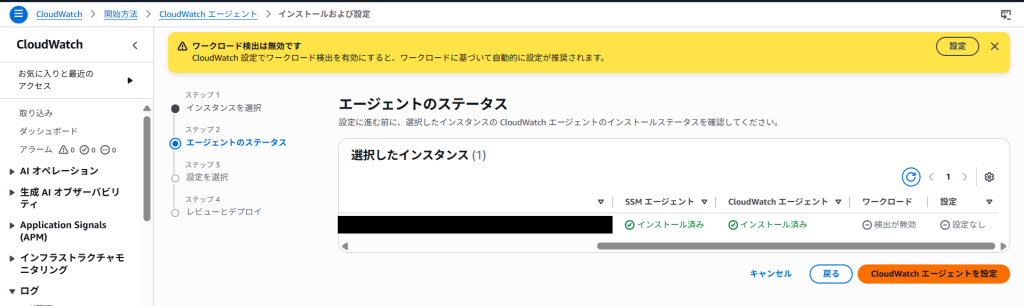 CloudWatch エージェントを設定ボタンをクリックします。
