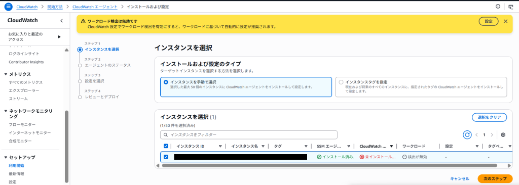 今回はインスタンスを手動で選択にを選択してインスタンスを選択し次のステップをクリックします。