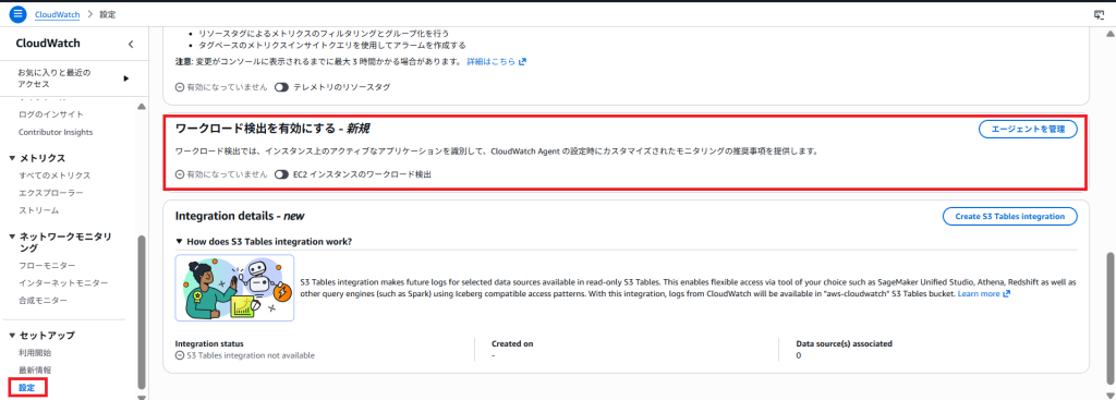 CloudWatch > 設定からワークロードを有効にします。