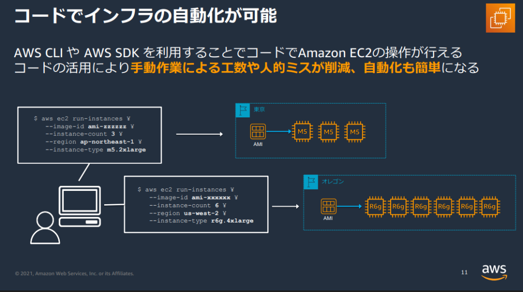 EC2上に立ち上げるインスタンスの管理は、CloudFormationやTerraform等のツールを使うことによってコードで管理ができます。